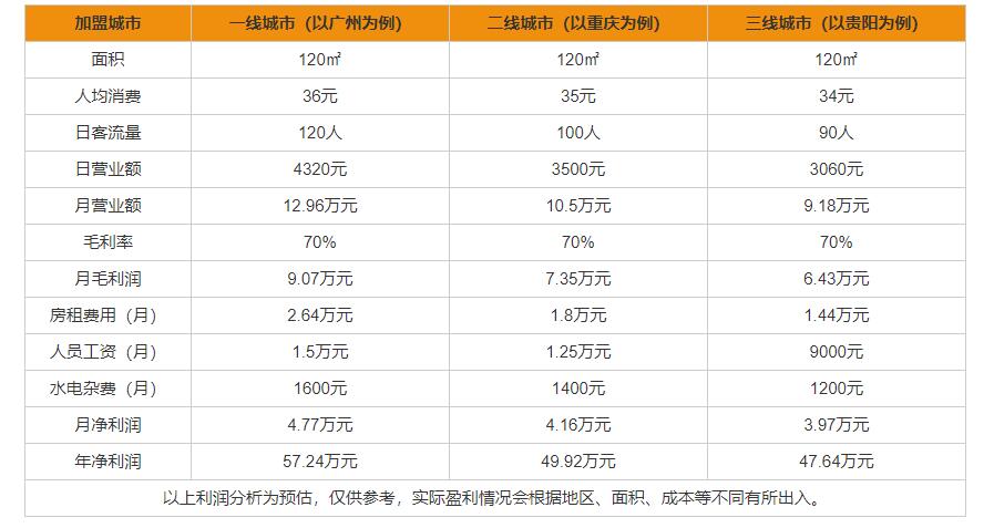屋头串串香能赚多少钱?从上表中,我们可以看出,屋头串串香在一线城市开店年净利润为57.24万元,在二线城市开店年净利润为49.92万元,在三线城市开店年净利润为47.64万元。由此可见,利润是十分丰厚的。