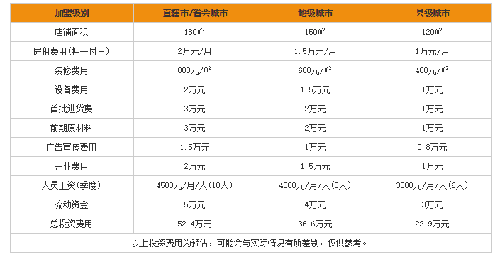 加盟成本费用