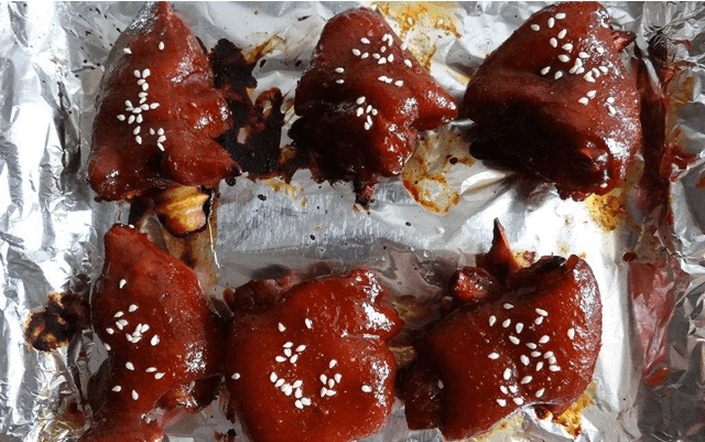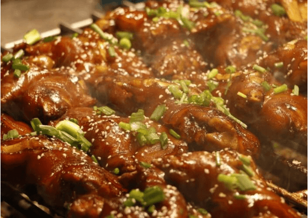 其次,烤猪蹄的做法也很简单:猪蹄整只,先用自己独家的配方腌料进行腌制,然后再煮再烤。独家配方烤出来的猪蹄则特别好吃,口感可以说是绝佳,一般再加上磨碎的花生、核桃、芝麻等。