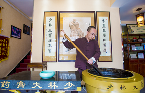 目前,市面上提供少林大膏熨服务的理疗店很多,大多打着“古法药熨”、“古法少林大膏熨”等旗号,内里换汤不换药,用一般的膏药来顶替少林大膏熨膏药,不仅疗效一般,更多消费者造成了不少困扰。少林正骨堂针对这一现象,特意从少林药局请出少林寺三大镇寺秘方之一——少林大膏药(古称少林大少林大膏熨、又称少林大黑膏),并针对现代人久坐湿重的特点在原有基础上进行了创新,既精益求精保证了古方少林大膏熨的传承性,又创新了古方药熨的适用人群与使用方法,对颈肩腰腿痛等患者有独特疗效,具有活血化瘀、祛风除湿、镇痛追风的作用。