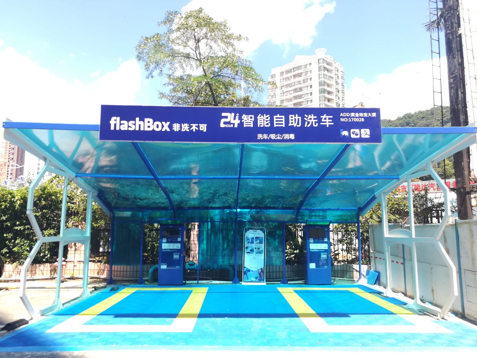 2、 我们的网点:面向广泛物业小区,加油站,停车场进行联合运营合作,计划于2016年底在深圳部署超过100个24小时智能自助洗车网点、全国部署超过3000个24小时智能自助洗车网点;