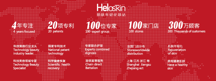 heloskin源自于法国时尚的健康管理理念,这样的理念在发达国家已有50多年的历史,通过物理学为前提的科学技术手段,安全有效直接的改善肌肤和细胞更新状况私人订制+科学护理+持久维护,完全利用物理学原理与高科技让您的皮肤变得更加得年轻健康,更加水润净透,一站式还原肌肤年轻化