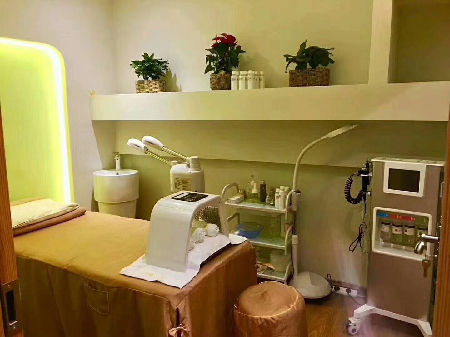 7、先进诊疗仪器:诊疗仪器、脸部CT仪、光谱仪、小气泡清洁仪、皮肤综合管理仪、冰雕注塑仪、冷热喷仪、头皮检测仪、光学显微镜、消毒柜机。