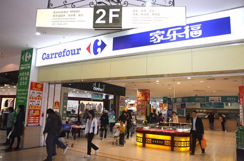 家乐福1995年开设了中国大陆购物广场,后来推出“开心购物家乐福”和“一站式购物”等理念。2005年家乐福对中国大陆的组织结构作出大幅调整,包括人事和管理两部分,还将设立东、南、西、北四个地区管理总部,并且任命4名高等管理人员。2006年10月,家乐福的全球第1,000家大卖场于北京郊区开幕(2007年09月,在中国大陆已有101家分店)。