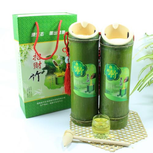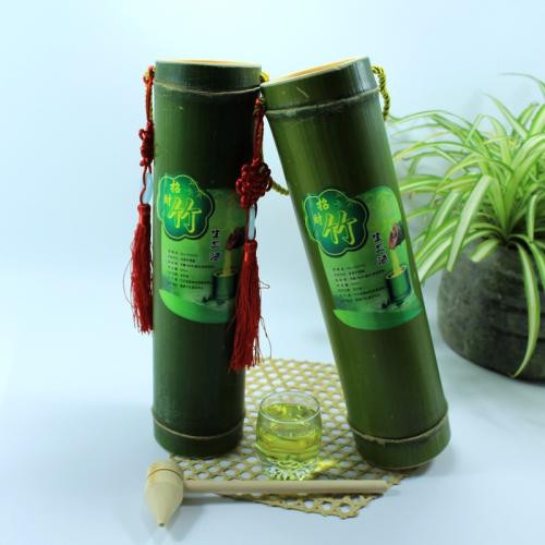 取优质高粱原浆酒,采用客家传统工艺及秘方泡制而成的养生保健酒作为基酒,“种”入到深山原生态嫩竹竹腔,让酒与竹子一起生长.让原酒的甲醇等有害介质在竹腔内慢慢释放,饱吸鲜竹精华,使酒充分渗入到竹的整个生理循环过程中,酒竹之间竹茹等有机结合“原酒、种酒、长酒、陈酒”四个流程贯穿于一体,经第二次自然发酵后,不断陈化酿造出成熟的竹筒酒。