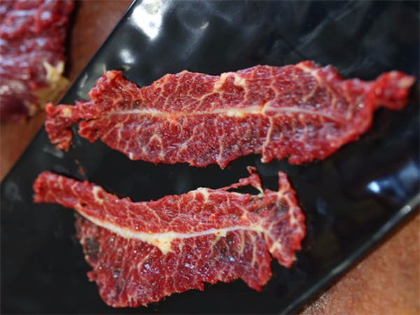 手工现切工艺,保留牛肉纤维,切得厚薄均一,保证了牛肉的新鲜度和新鲜口感。