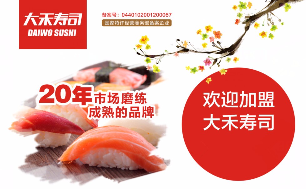 大禾寿司专注品牌20年,在全国先后拓展有60多家连锁店,形成可复制的成功商业模式,保障加盟事业低风险、高回报。
