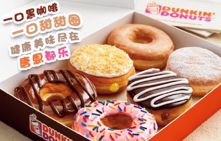 总部位于美国马萨诸塞州的Dunkin’Donuts自上世纪五十年代起,就供应传统的美式甜甜圈和新鲜的研磨咖啡。2007年,Dunkin’Donuts名列全美十大快餐连锁品牌,并当选为美国人喜爱的咖啡品牌。Dunkin’Donuts上海门店将提供60多种口味的高质量美味甜甜圈。通过本地市场调研,甜甜圈的甜度将根据本地消费者的口味而作调整。此外,Dunkin’Donuts将新发展一系列茶饮品,包括传统的中式茶和西式茶,同时引入绿茶、黄豆甜甜圈以及麻?内馅、富有嚼劲的甜甜圈。
