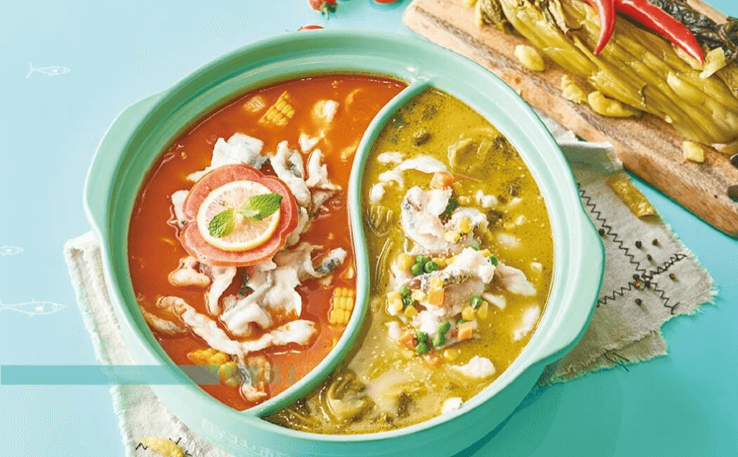 在这里,有相识记忆里挥之不散的鸳鸯双拼;有初恋路上丝丝入扣的番茄酸甜;有热恋时火热交融的水煮麻辣;有爱到深处百转千回的酸菜醇鲜;更有别离后心乱如麻又朝思暮想的藤椒鲜麻。