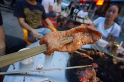 火盆烧烤风味足西昌火盆烧烤,据说是源于凉山彝族人家平日里粗犷简朴的民间饮食方式——彝家人夜晚时,往往围坐火盆边,将高山土豆、玉米、甘蔗等放入火盆里烘烤,其间或聊家常,或畅饮自家酿制的包谷酒,自得其乐。大约是在上世纪80年代后期吧,这种脱胎于当地民俗的“火盆烧烤”,才开始出现在凉山州西昌的街头和邛海景区湖边。那时的烤具很简单,一张中间被挖空的矮木桌,桌下放置一个搪瓷盆制成的简易火盆,桌面上再放一张铁丝网,所有的食材都可以放在铁丝网上炙烤,故那时的火盆烧烤又名铁网烧烤。如今,我们看到的火盆烧烤已经变得规范统一,器具多是圆形炭火盆与方形烤架二合一的标准烤具。