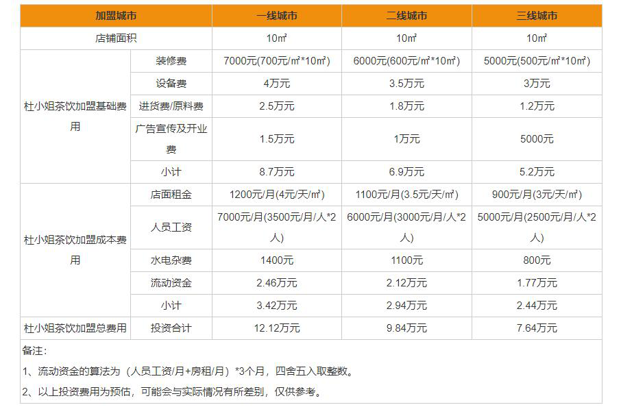 杜小姐奶茶加盟费构成