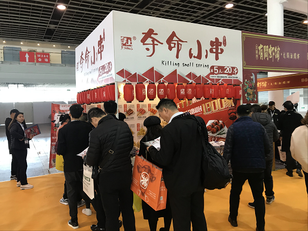 集尚餐饮旗下“夺命小串”品牌自2015年问世以来,以其时尚清新的店面形象、极具吸引力的产品、合理的价格、优质的服务赢得了众多消费者的青睐和好评。展会现场,夺命小串独树一帜的展位布置吸引了不少投资者前来,工作人员现场制作的小串让投资者大快朵颐,看到了商机,与现场招商人员洽谈合作的人更是络绎不绝。